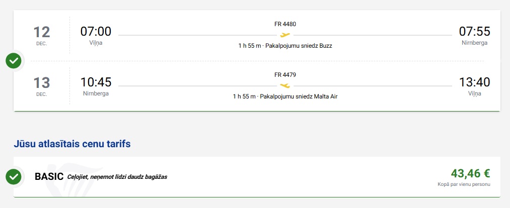 Tiešie Ryanair lidojumi no Viļņas uz Nirnbergu.