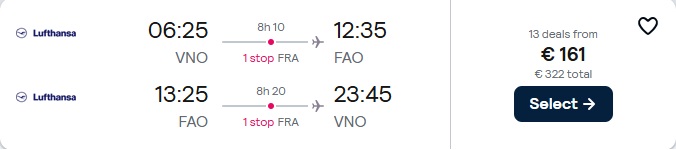 Lufthansa lidojumi no Viļņas uz Faru ar pārsēšanos Frankfurtē.