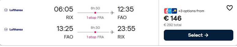 Lufthansa lidojumi no Rīgas uz Faru ar pārsēšanos Frankfurtē.
