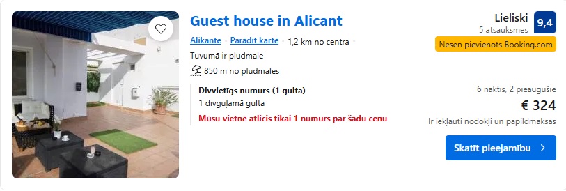 Viesu nams Guest house in Alicant. Divvietīgs numurs uz 6 naktīm – 324 EUR.