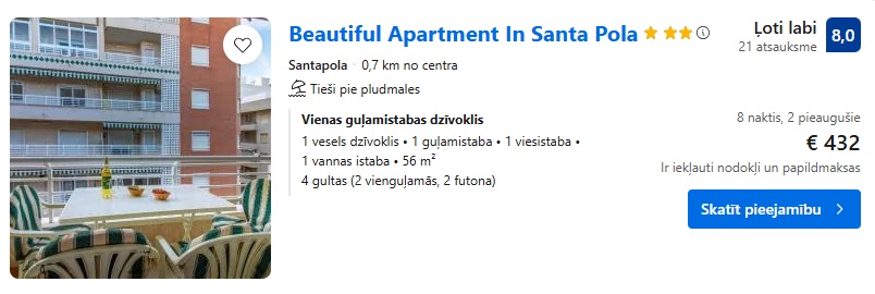 Apartamenti Beautiful Apartment In Santa Pola uz 8 naktīm – 432 EUR.