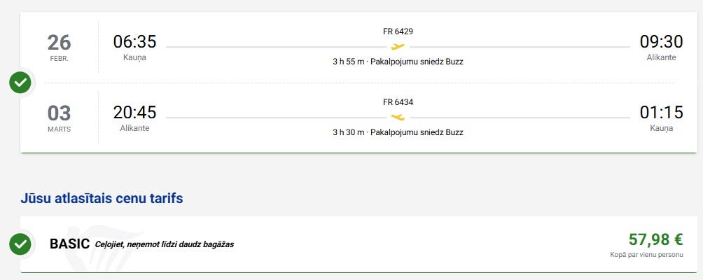 Tiešie Ryanair lidojumi no Kauņas uz Alikanti.
