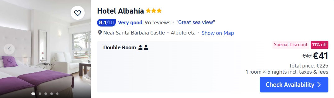 3* viesnīca Hotel Albahia Alicante. Divvietīgs numurs uz 5 naktīm – 225 EUR.
