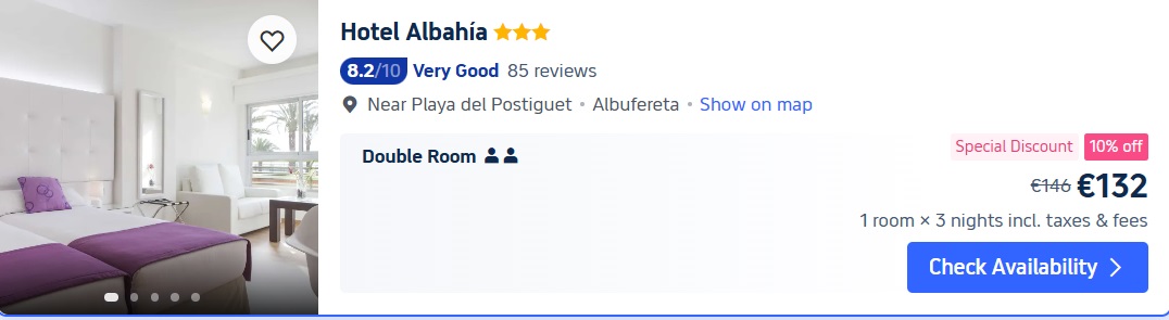 3* viesnīca Hotel Albahia Alicante. Divvietīgs numurs uz 3 naktīm – 132 EUR.