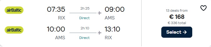 Air Baltic lidojumi no Rīgas uz Amsterdamu.