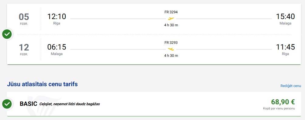 Ryanair lidojumi no Rīgas uz Malagu.
