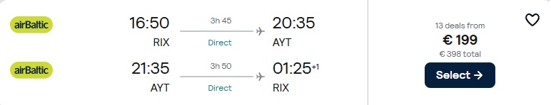 Tiešais Air Baltic lidojums no Rīgas uz Antāliju.