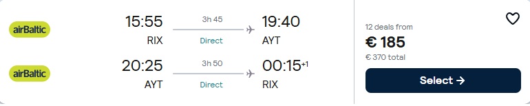 Tiešais Air Baltic lidojums no Rīgas uz Antāliju.