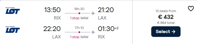 Rīga – Losandželosa 1.-15.11. 432 EUR turp un atpakaļ