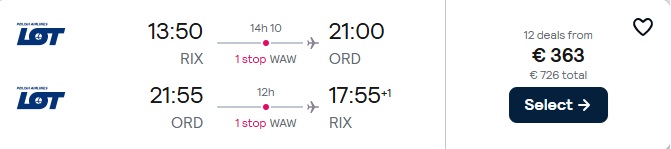 Rīga – Čikāga 1.-14.11. 363 EUR turp un atpakaļ