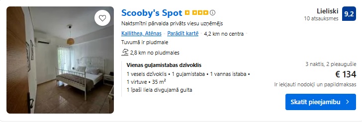 Apartamenti Scooby’s Spot uz 3 naktīm – 134 EUR.