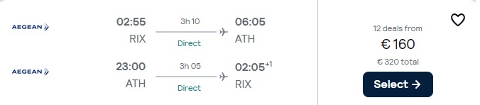 Tiešie Aegean lidojumi no Rīgas uz Atēnām.