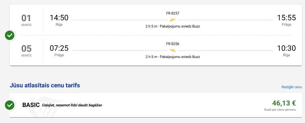 Tiešie Ryanair lidojumi no Rīgas uz Prāgu (cenā nav iekļauta bagāža).