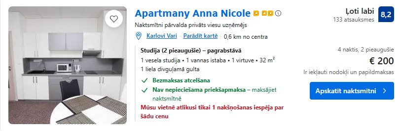 Apartamenti Apartmany Anna Nicole uz 4 naktīm – 200 EUR.