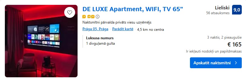 Apartamenti DE LUXE Apartment, WIFI, TV 65″ uz 3 naktīm – 165 EUR.