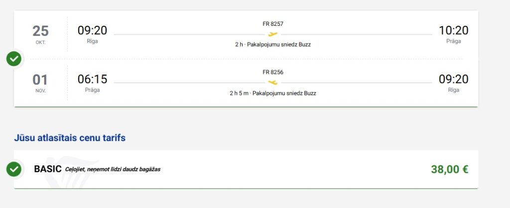 Tiešie Ryanair lidojumi no Rīgas uz Prāgu (cenā nav iekļauta bagāža).