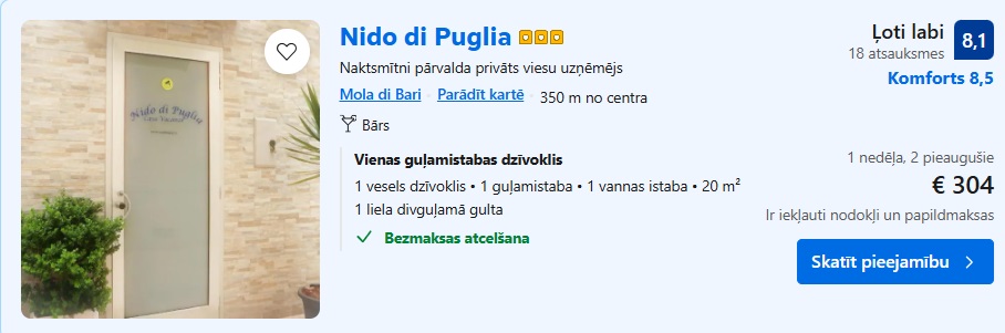 Share the post "Bari, Apūlija! Lidojums un 7 naktis apartamentos pie jūras – 248 EUR"