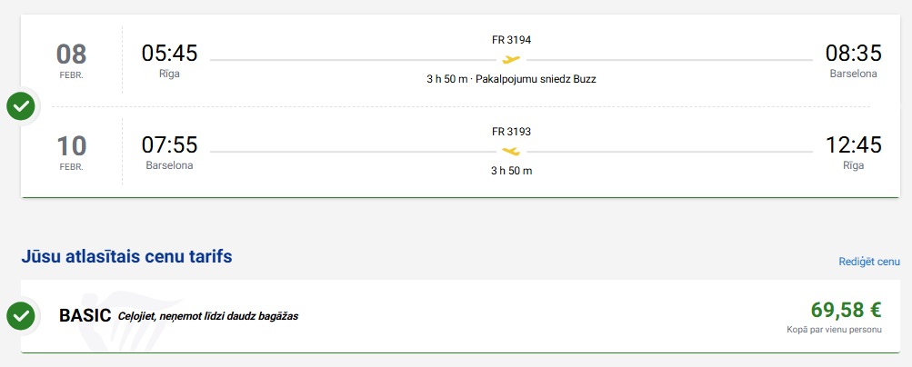 Tiešie Ryanair lidojumi no Rīgas uz Barselonu (bagāža nav iekļauta cenā).