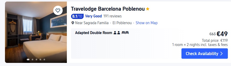 Viesnīca Travelodge Barcelona Poblenou. Divvietīgs numurs uz 2 naktīm – 119 EUR.