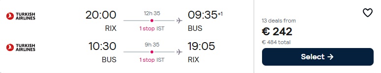 Turkish Airlines lidojumi no Rīgas uz Batumi ar pārsēšanos Stambulā.