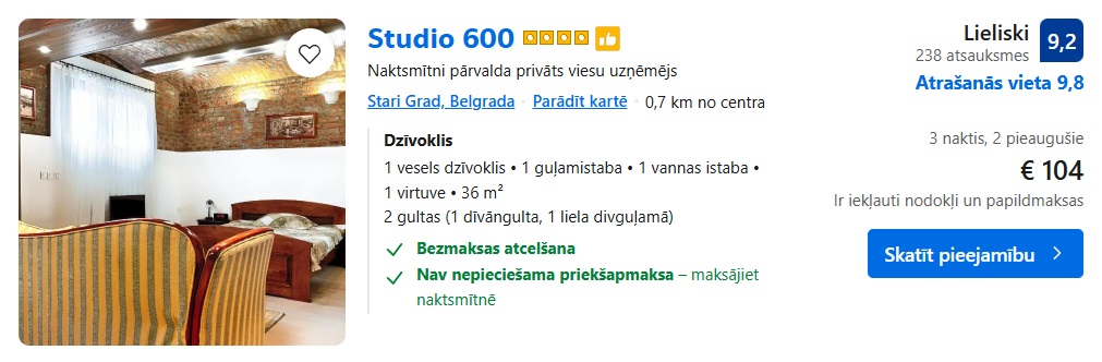 Apartamenti Studio 600 uz 3 naktīm – 104 EUR.