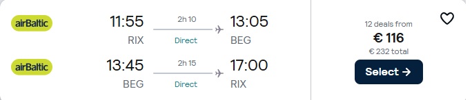 Tiešie Air Baltic lidojumi no Rīgas uz Belgradu.