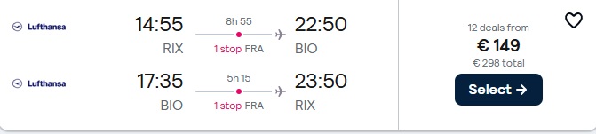 Lufthansa lidojumi no Rīgas uz Bilbao ar pārsēšanos Frankfurtē.