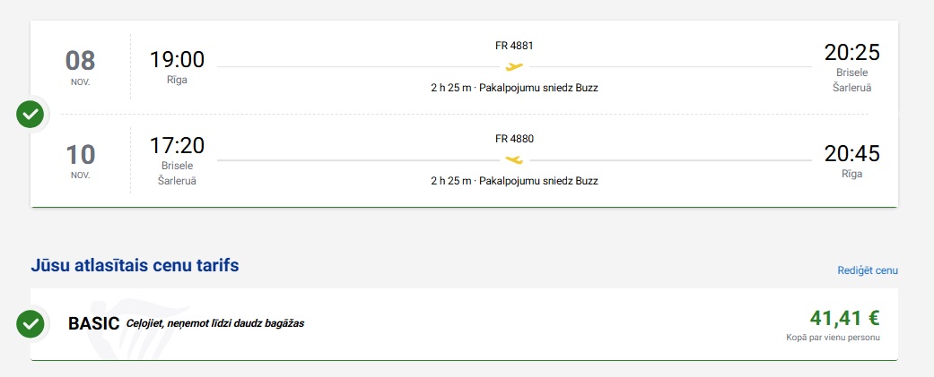 Tiešie Ryanair lidojumi no Rīgas uz Briseli (Charleroi). Cenā nav iekļauta bagāža.