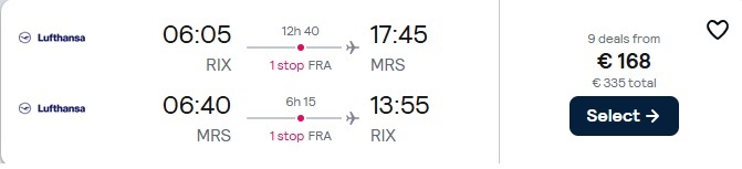 Lufthansa lidojums Rīga – Marseļa ar pārsēšanos Frankfurtē.