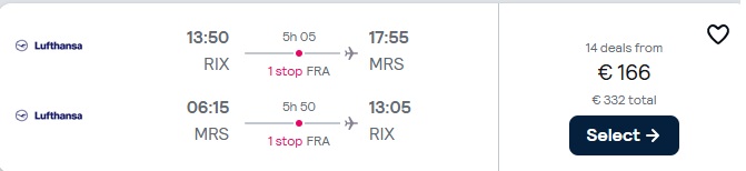 Lufthansa lidojums Rīga – Marseļa ar pārsēšanos Frankfurtē.