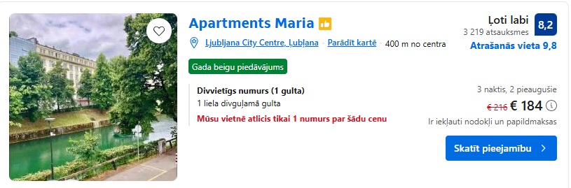 Viesnīca Apartments Maria. Divvietīgs numurs uz 3 naktīm – 184 EUR.