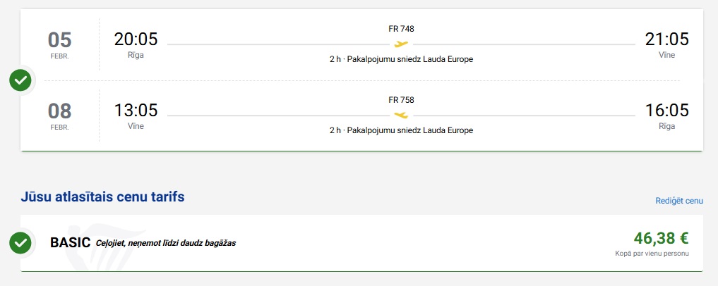 Tiešie Ryanair lidojumi no Rīgas uz Vīni.