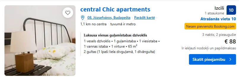 Apartamenti central Chic apartments uz 3 naktīm – 88 EUR.