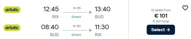Tiešie Air Baltic lidojumi no Rīgas uz Budapeštu.