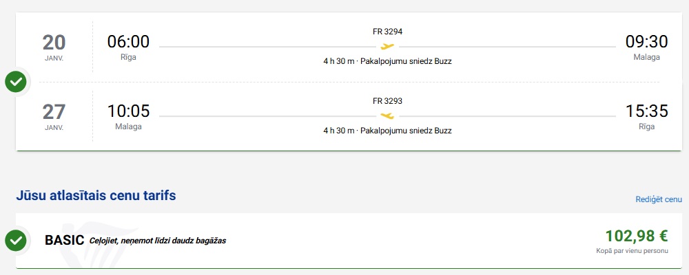 Tiešie Ryanair lidojumi no Rīgas uz Malagu.