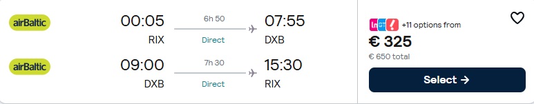 Tiešie Air Baltic lidojumi no Rīgas uz Dubaiju.