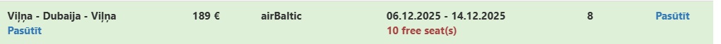 Tiešie Air Baltic lidojumi no Viļņas uz Dubaiju.
