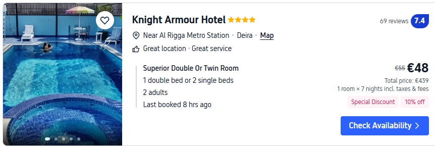 4* viesnīca Knight Armour Hotel. Divvietīgs numurs uz 7 naktīm – 439 EUR.