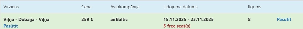 Tiešie Air Baltic lidojumi no Viļņas uz Dubaiju.