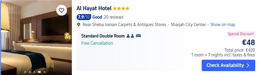 4* viesnīca Al Hayat Hotel Suites. Divvietīgs numurs uz 7 naktīm – 420 EUR.
