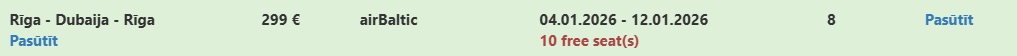 Tiešais Air Baltic lidojums no Rīgas uz Dubaiju.