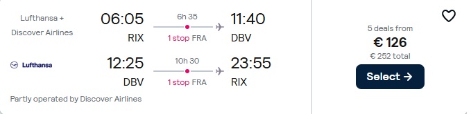 Lufthansa lidojumi no Rīgas uz Dubrovniku ar pārsēšanos Frankfurtē.