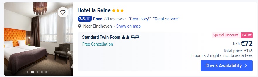 Viesnīca La Reine ir viegli sasniedzama ar sabiedrisko transportu un automašīnu. Eindhovenā par papildmaksu ir pieejama ierobežota autostāvvieta.