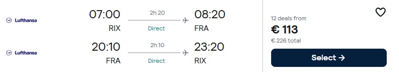 Tiešie Lufthansa lidojumi no Rīgas uz Frankfurti.