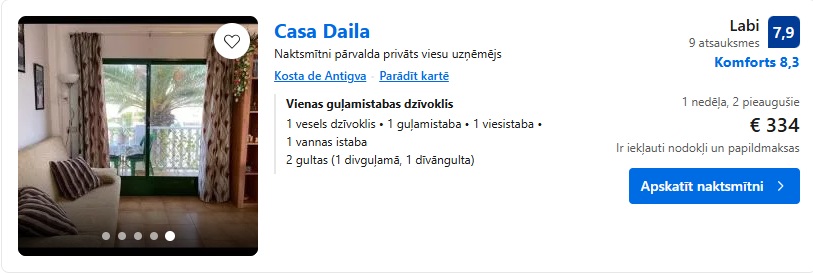 Naktsmītne Casa Daila atrodas Kosta de Antigvā, Kanāriju salu reģionā. Viesiem ir pieejama terase. Pie dzīvokļa bez maksas ir pieejams gan bezmaksas bezvadu internets, gan uz vietas esošā autostāvvieta. Īpašums ir nesmēķētāju un atrodas 1,5 km attālumā no Plaja Laskaletiljas.