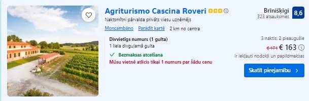 Viesnīca Agriturismo Cascina Roveri. Divvietīgs numurs uz 3 naktīm – 163 EUR.