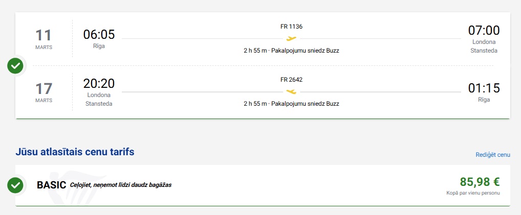 Rīga – Londona – Rīga 11.-17.03. 86 EUR turp un atpakaļ vienam cilvēkam