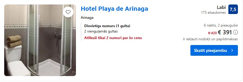 Viesnīca Hotel Playa de Arinaga. Divvietīgs numurs uz 6 naktīm – 391 EUR.