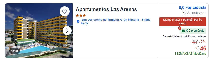 Viesnīca Apartamentos Las Arenas. Divvietīgs numurs uz 6 naktīm – 278 EUR.