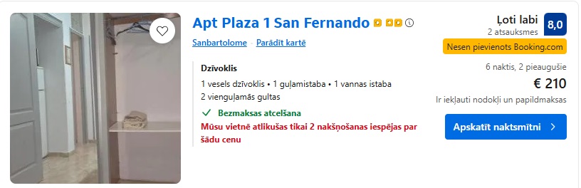 Apartamenti Apt Plaza 1 San Fernando uz 6 naktīm – 210 EUR.